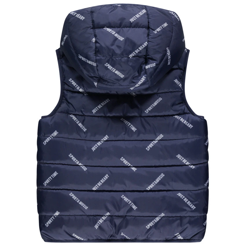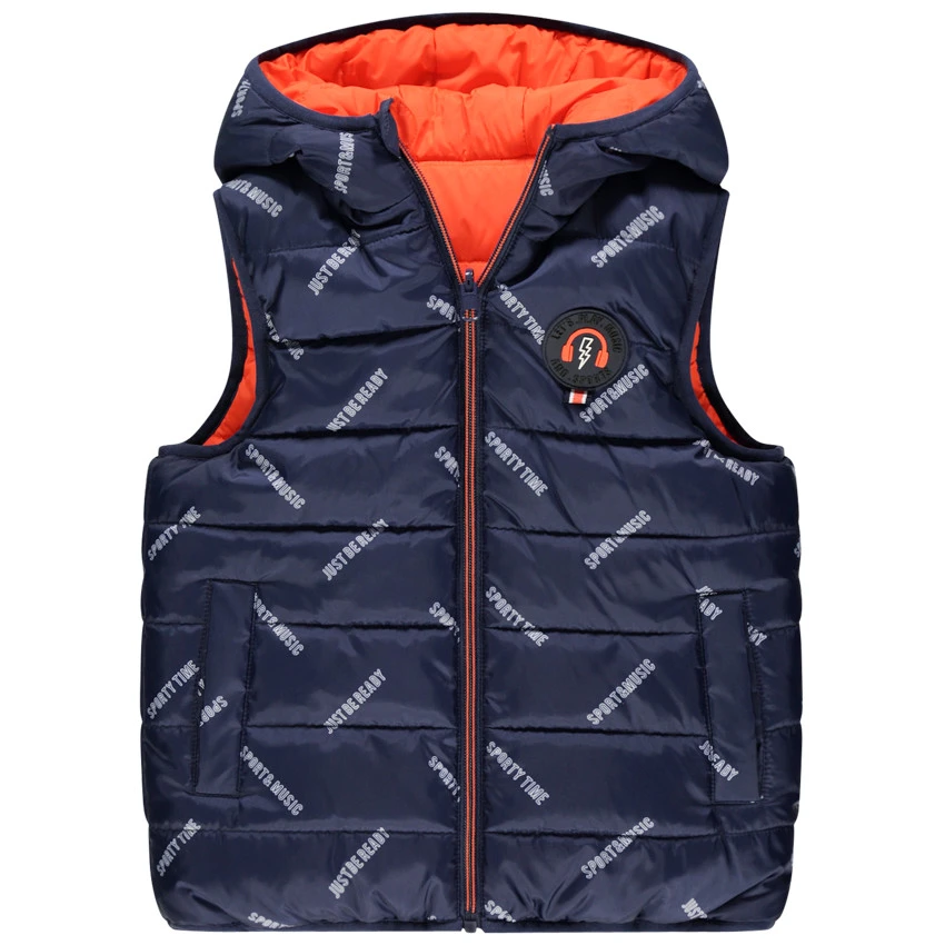 Doudoune sans manches réversible. Textes printés all-over. Badge en gomme sur la poitrine. 2 poches coupées devant.