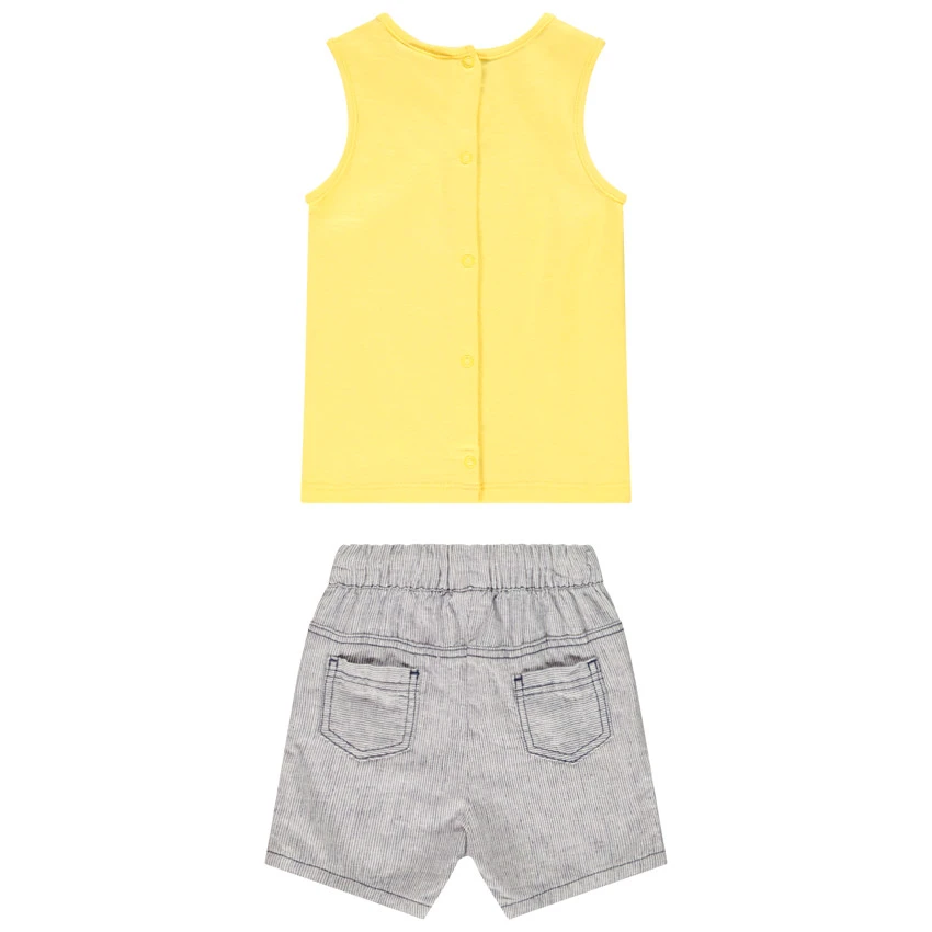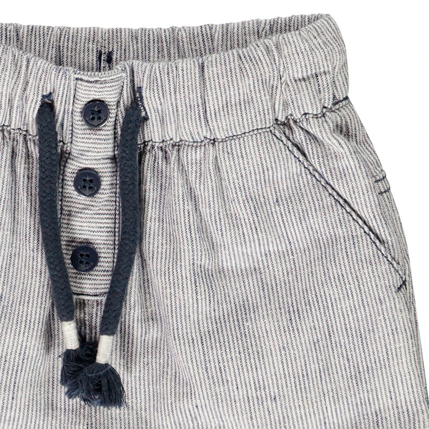 Bermudas en coton. Taille élastiquée avec cordon de serrage. 2 poches cavalières. Fausse braguette à boutons. 2 poches plaquées à l’arrière.
