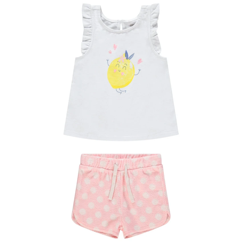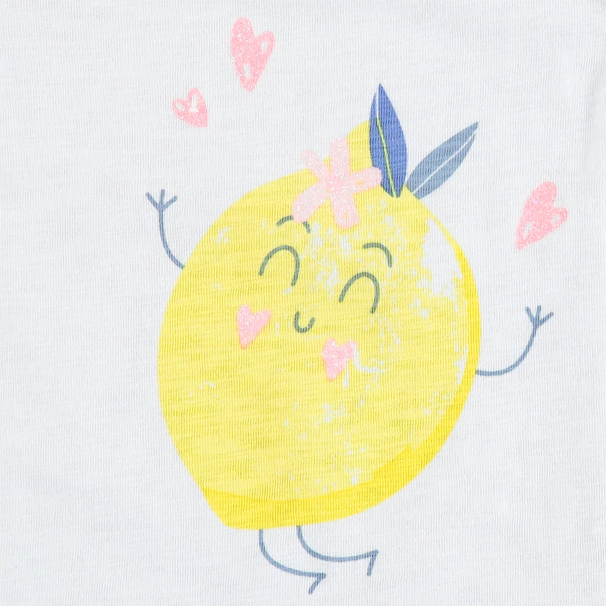 Débardeur en coton. Encolure ronde en bord-côte. Manches volantées. Citron printé devant.