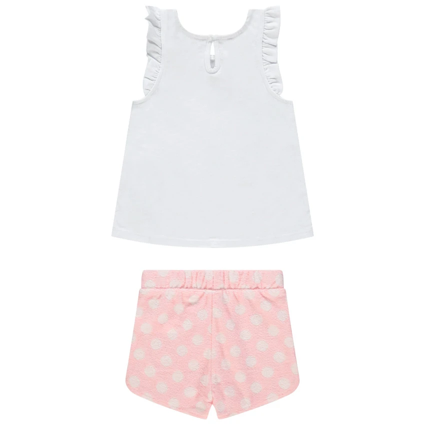 Short en éponge à pois all-over. Taille élastiquée à cordons de serrage.
