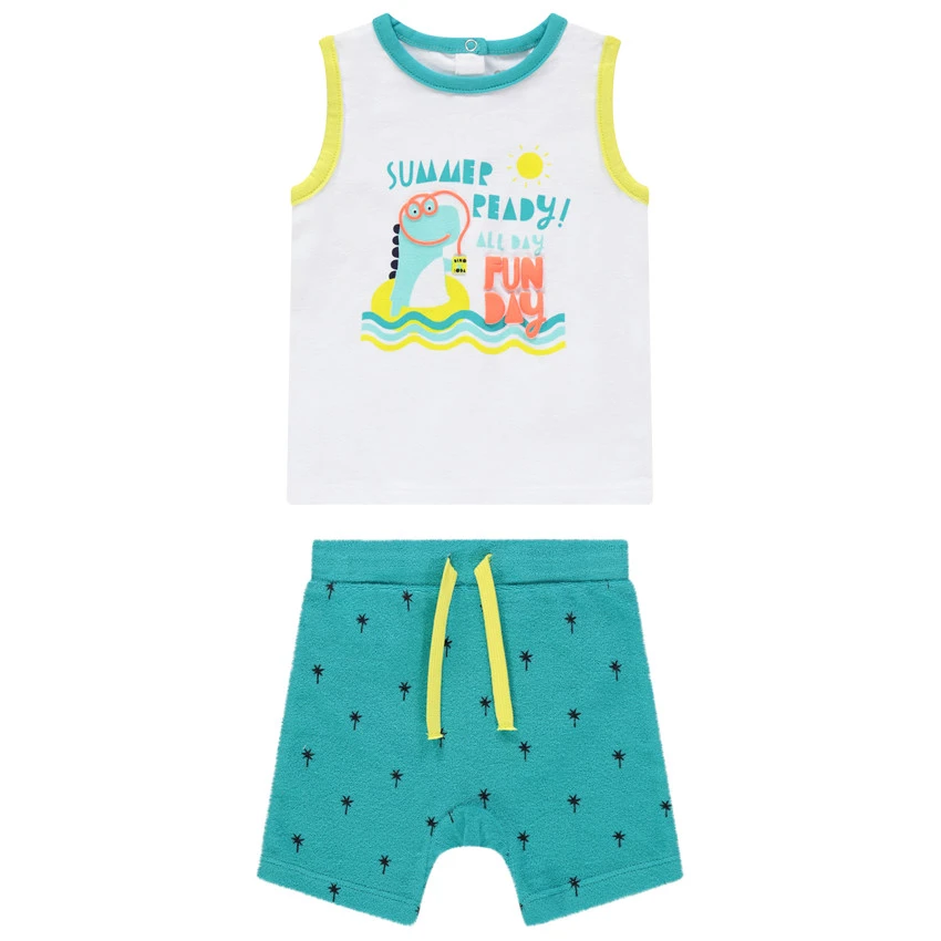 Débardeur uni. Encolure ronde en bord-côte contrastée. Dinosaure printé devant avec détails en relief. Ouverture pressionnée au dos.