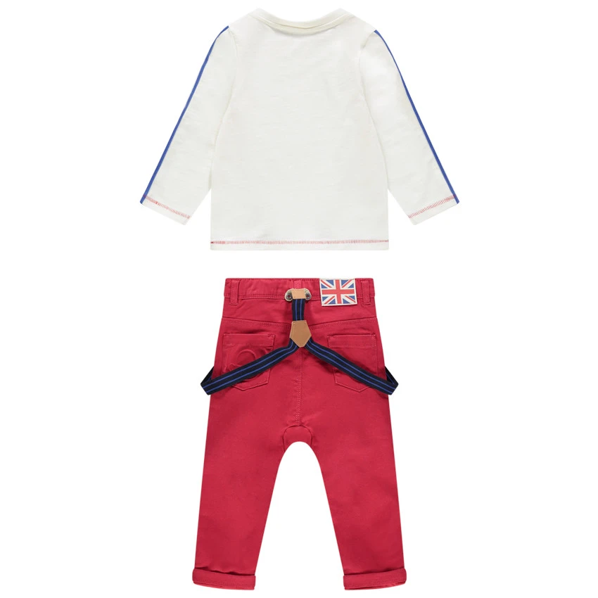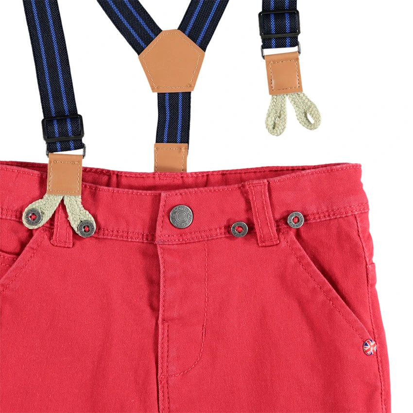 Pantalon uni. Taille à passants ajustable de l’intérieur par élastiques et boutons. Bretelles élastiquées amovibles. 2 poches italiennes devant. 2 poches plaquées au dos.