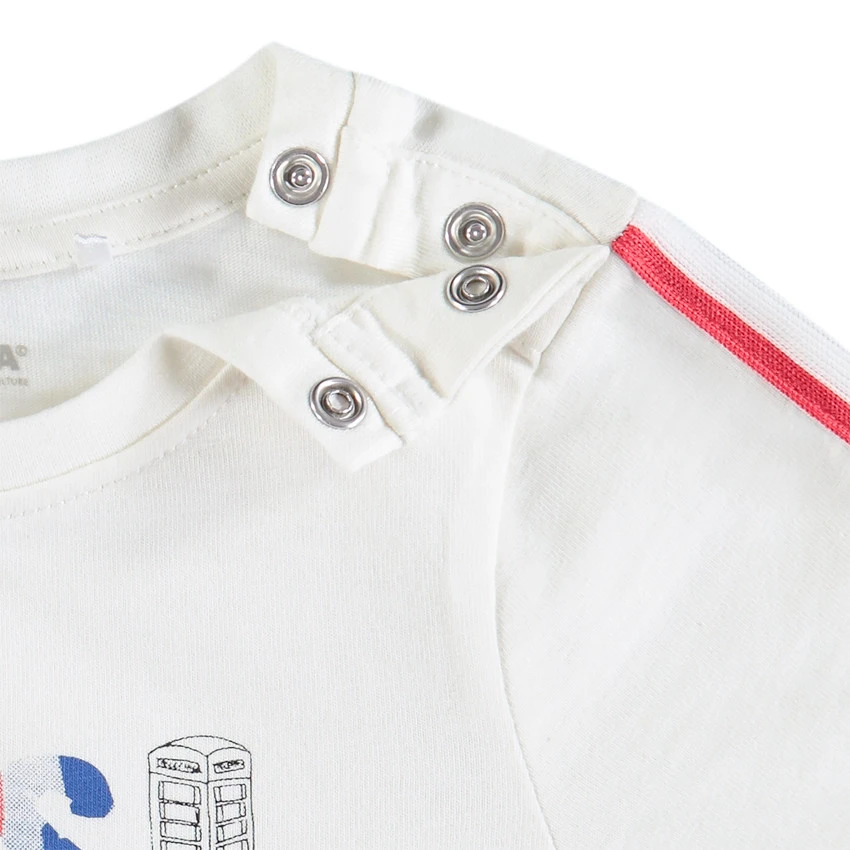 T-shirt manches longues en coton. Encolure ronde en bord-côte. Ouverture pressionnée sur le côté. Message printé devant. Bandes contrastées sur les manches.
