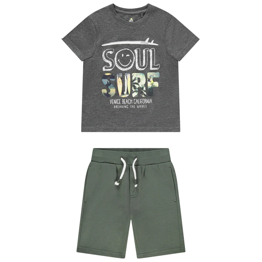 T-shirt manches courtes chiné pour enfant garçon. Encolure ronde en maille extensible. Texte et SmileyWorld printés devant. Inscription printée en bas du dos.