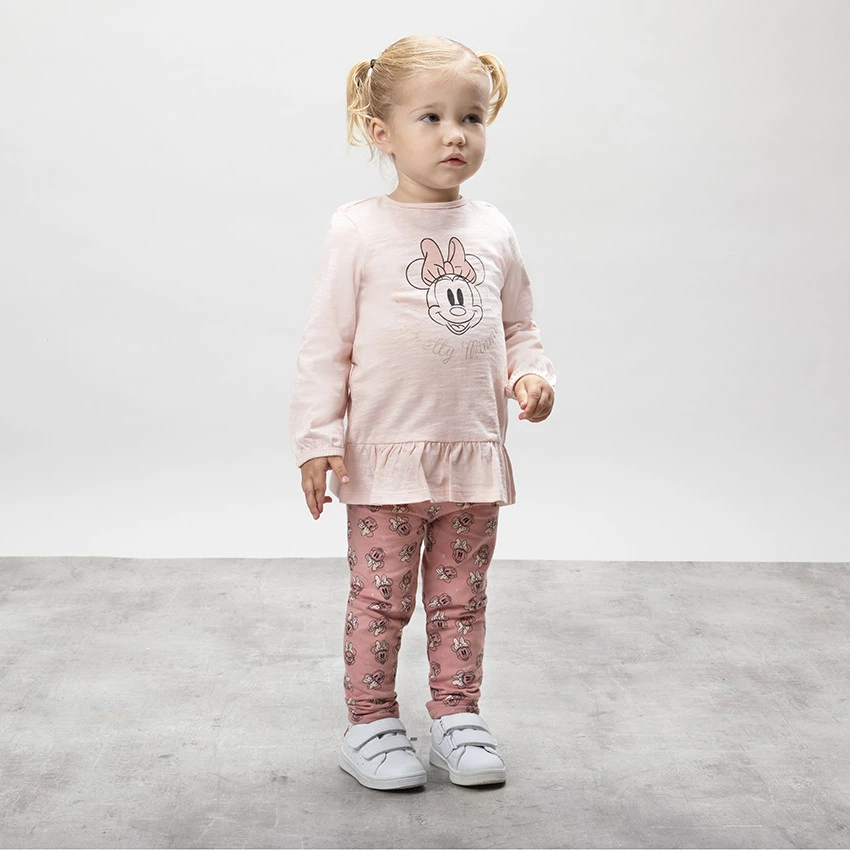 Legging en jersey imprimé Minnie all-over. Taille élastiquée. Noeuds de Minnie printés sur les revers.