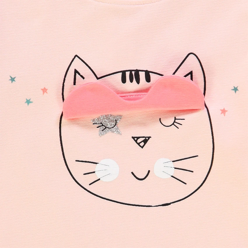 Tunique manches longues en coton. Col rond en maille extensible pour l’enfiler facilement. Chat printé sur le devant avec masque mobile. Bout des manches à effet de superposition. Bas de la tunique volanté. Ouverture pressionnée au dos pour l’enfiler facilement.