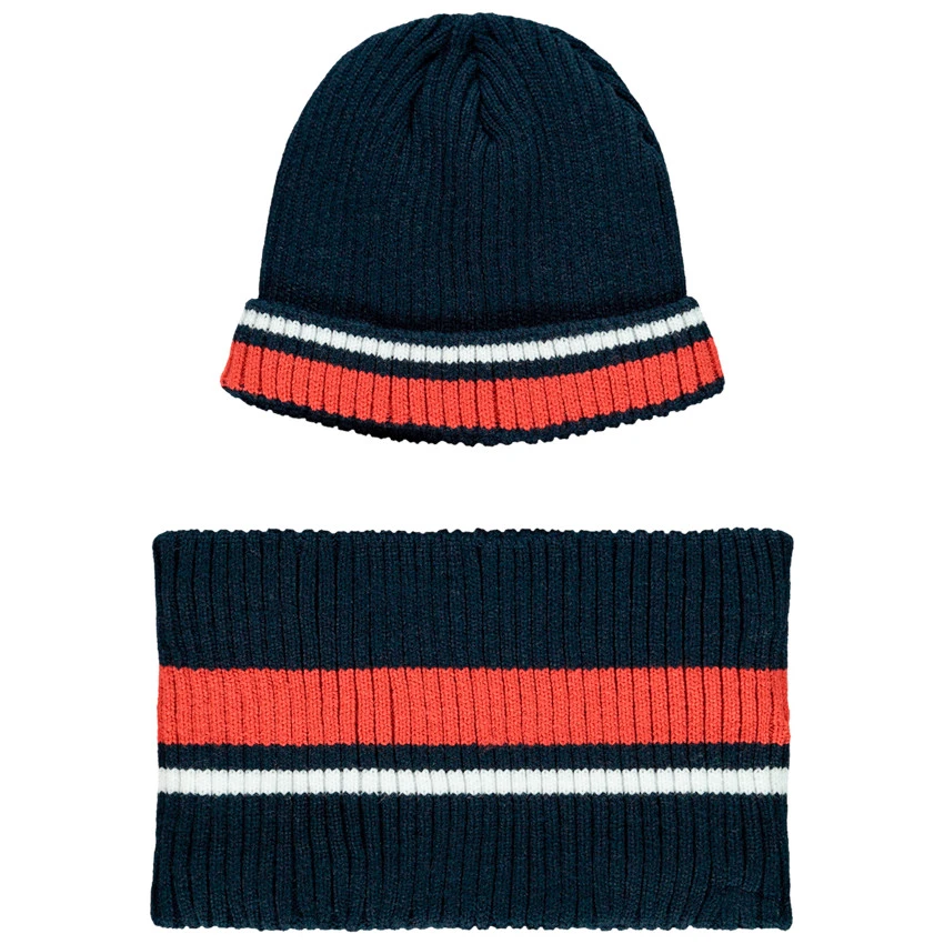 Bonnet en tricot doublé sherpa. Revers à bandes contrastées en jacquard.