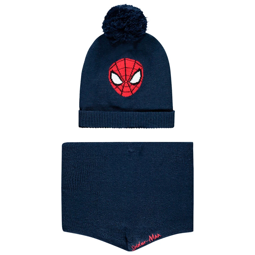 Bonnet en tricot motif Spiderman. Doublure en sherpa. Pompon sur le dessus. Revers en maille extensible.