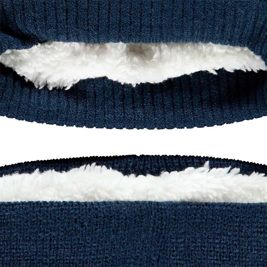 Snood en tricot bleu marine. Doublure en sherpa. Inscription brodée.