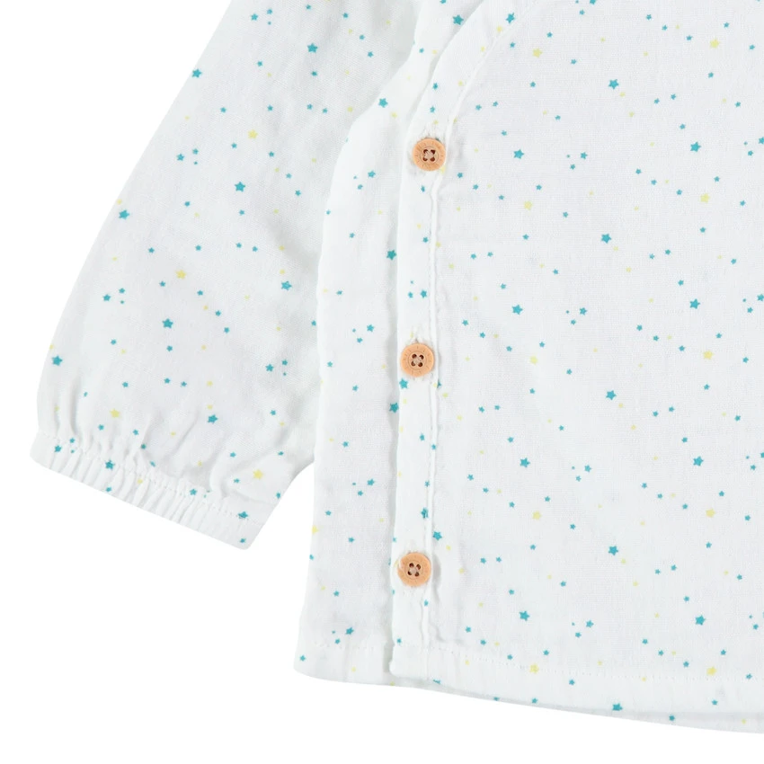 Brassière en coton imprimée all-over. Ouverture boutonnée devant. Poignets élastiqués.