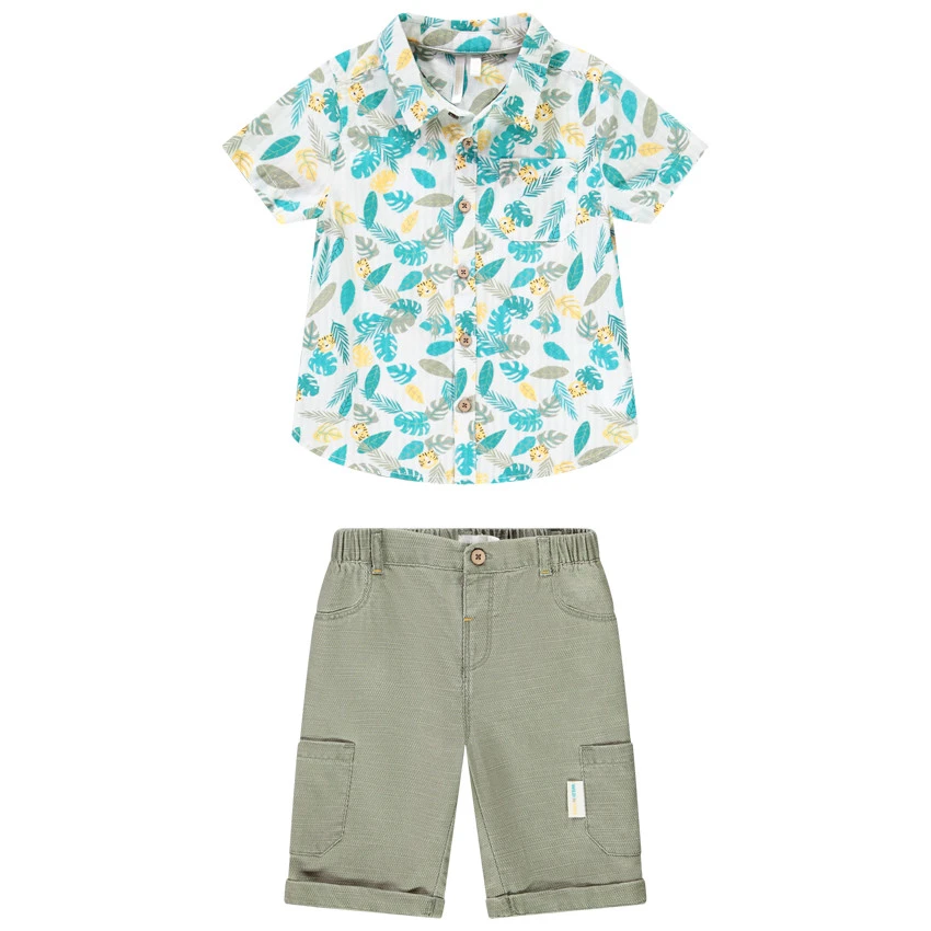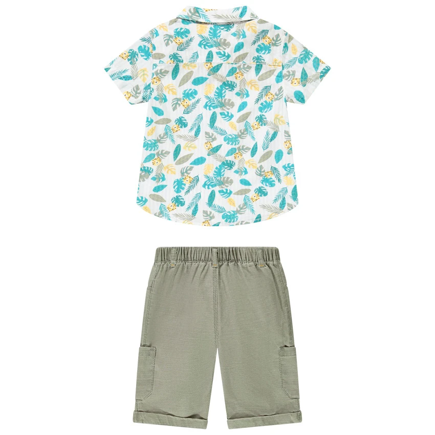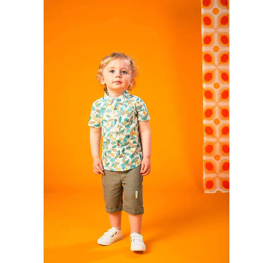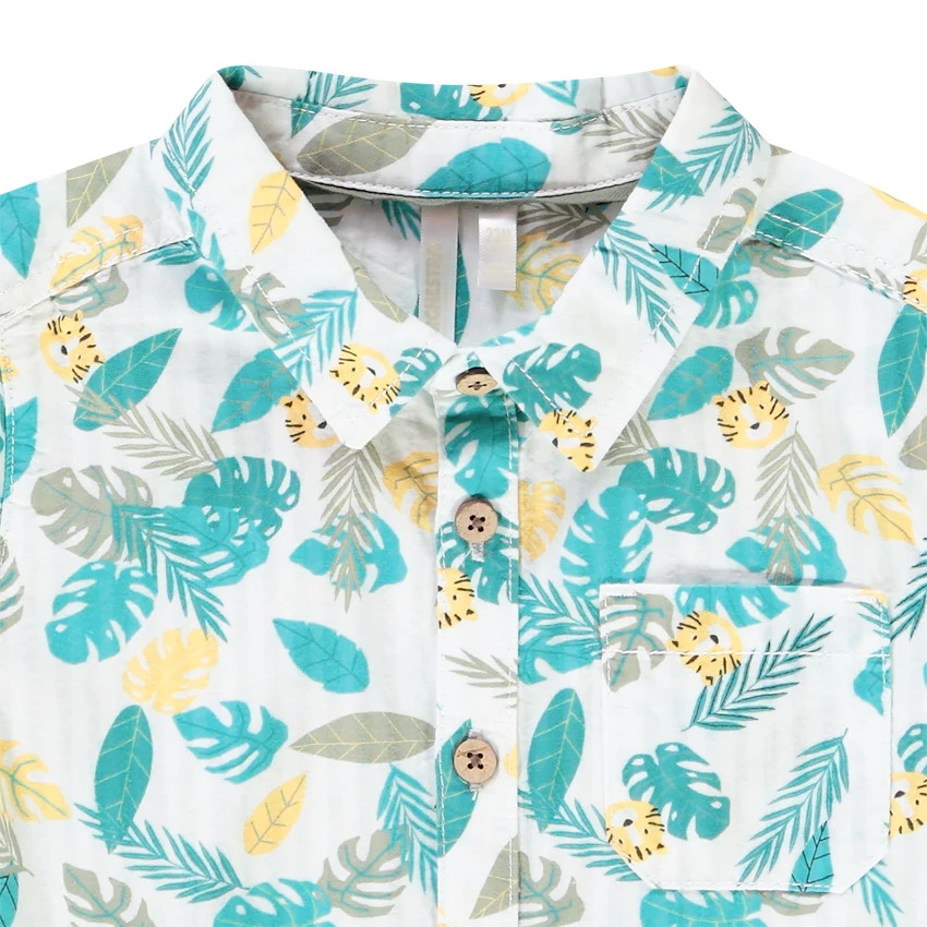 Chemise manches courtes. Col chemise. Ouverture boutonnée sur le devant. Une poche plaquée sur la poitrine. Imprimé tigres et feuilles all-over.