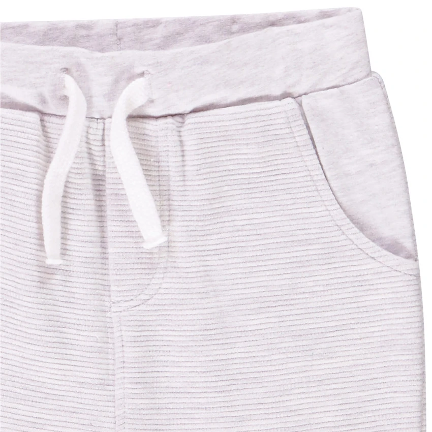 Jogging gris chiné. Taille élastiquée avec cordon de serrage. Deux poches devant. Chevilles élastiquées.