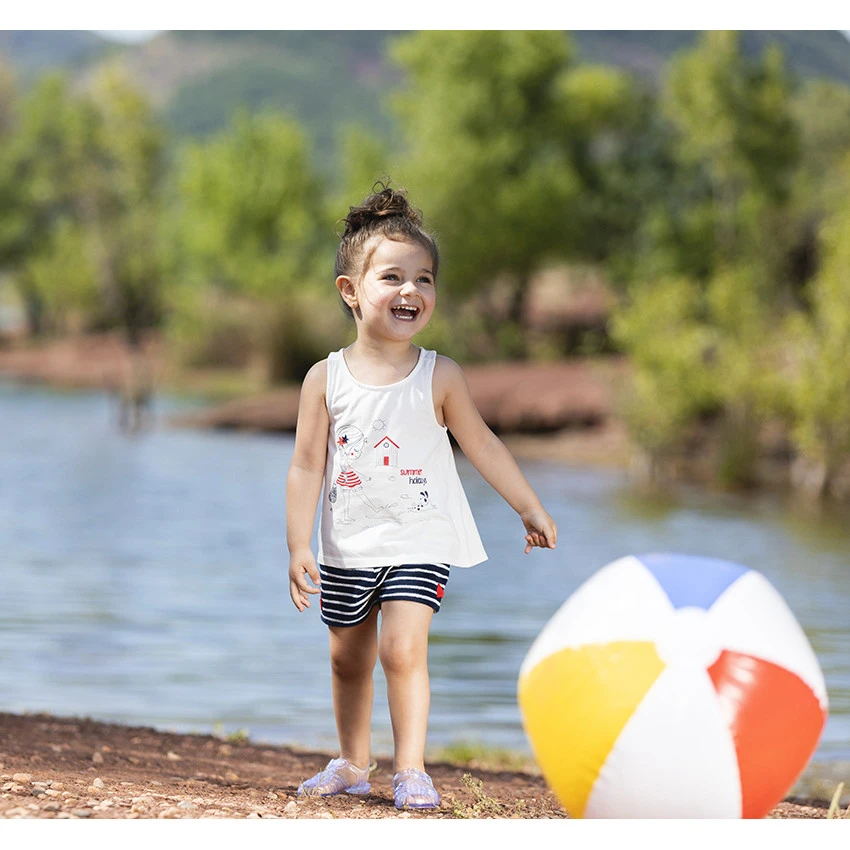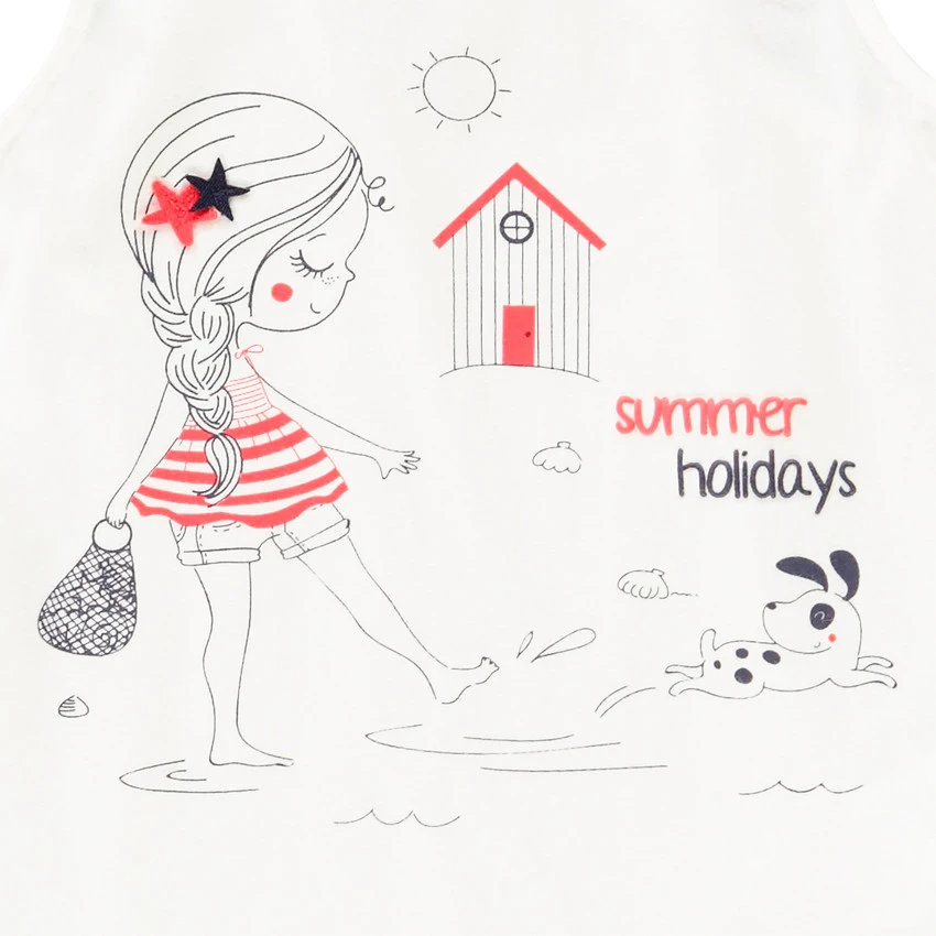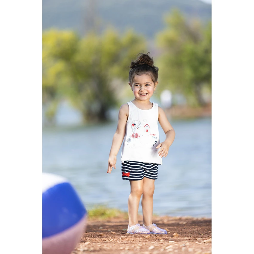 Débardeur en éponge. Encolure ronde. Print sur le devant avec détails en relief. Ouverture pressionnée dans le dos. Noeud fantaisie contrasté dans le dos.