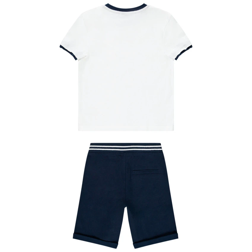 Short. Taille élastiquée avec bandes contrastées. Cordon de serrage. Deux poches sur le devant. Revers au bas du short. Une poche passepoilée à l’arrière.