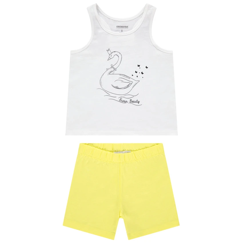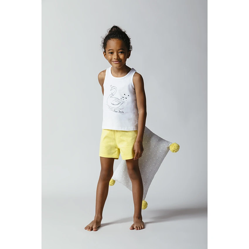 Débardeur uni. Encolure ronde. Cygne printé devant. Short en jersey uni.