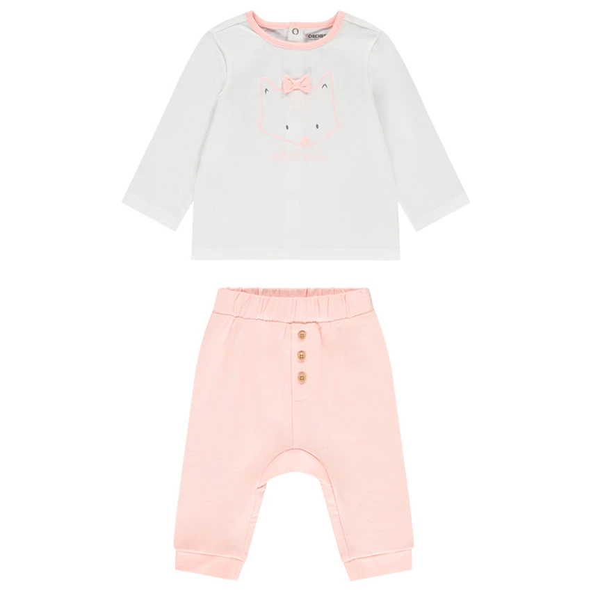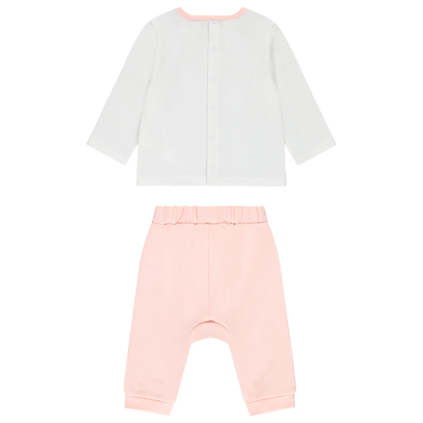 Pantalon rose en coton issu de l’agriculture biologique. Taille élastiquée pour plus de confort. Boutons fantaisie devant.