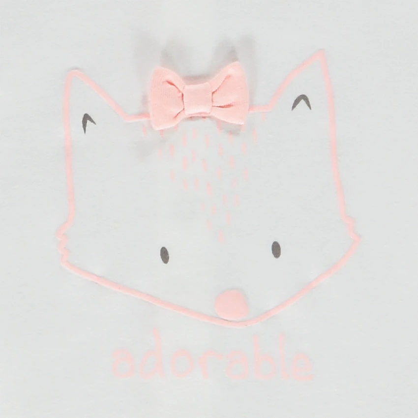 T-shirt manches longues blanc. Coton issu de l’agriculture biologique pour respecter la peau et l’environnement. Col rond contrasté. Renard printé devant avec petit noeud en relief cousu.