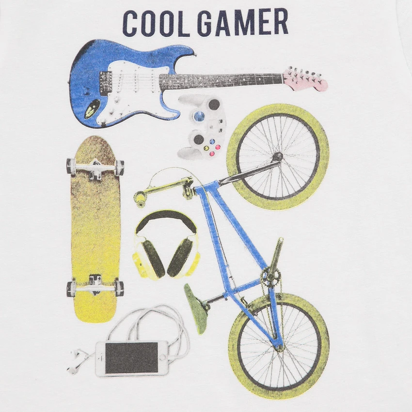 T-shirt manches courtes en coton. Col en maille extensible. Motifs fantaisie printés sur le devant. Dos uni.