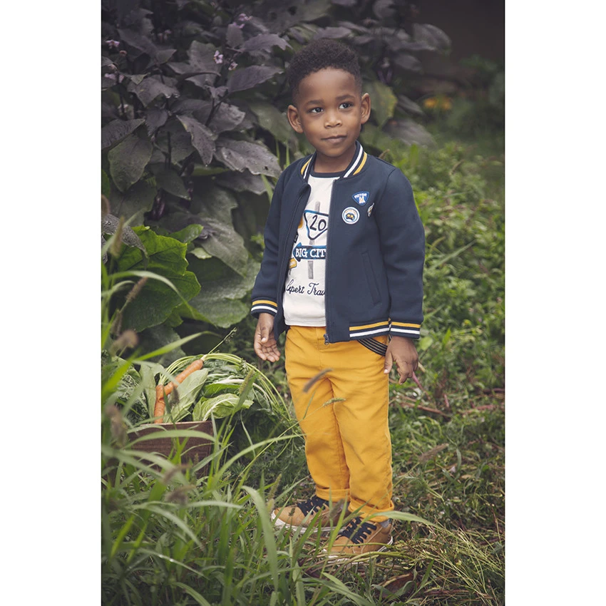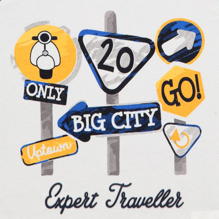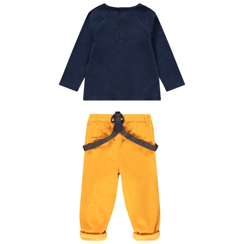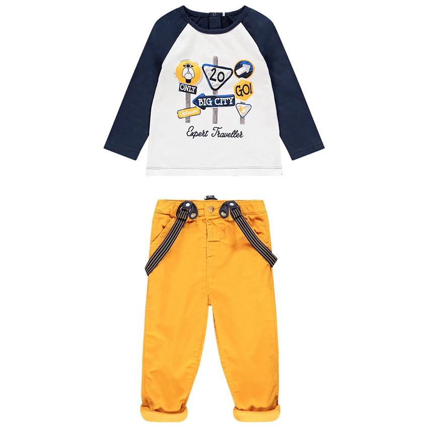 T-shirt manches longues bicolore pour bébé garçon. Col rond en maille extensible. Panneaux printés devant. Ouverture pressionnée au dos.