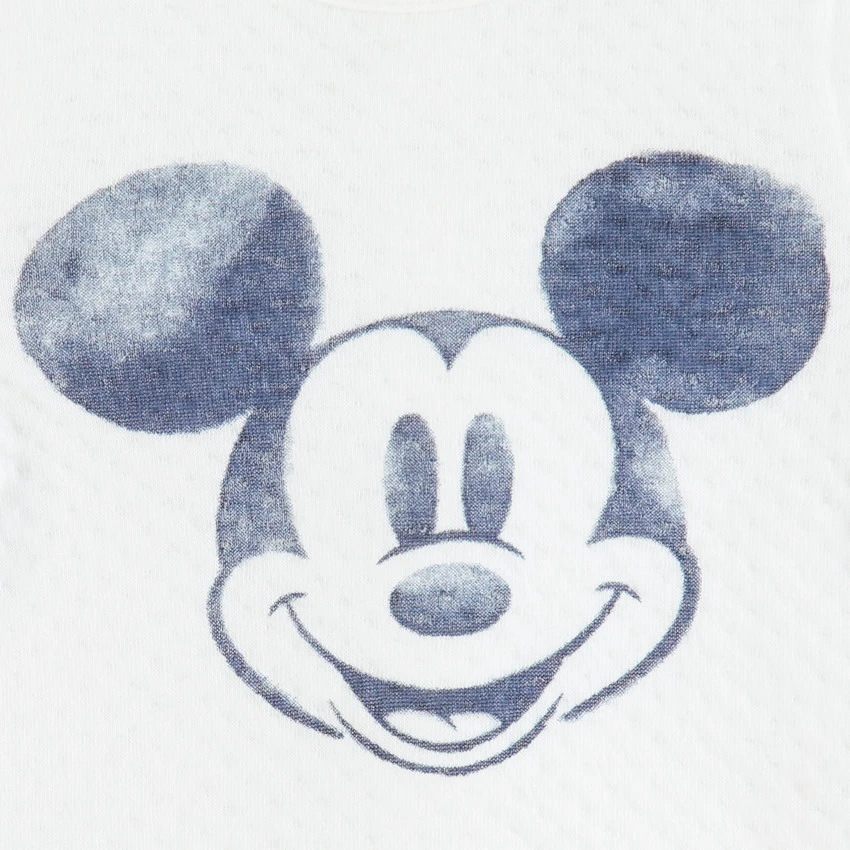 T-shirt manches longues en maille gauffrée. Print Mickey. Encolure ronde. Ouverture pressionnée au dos.