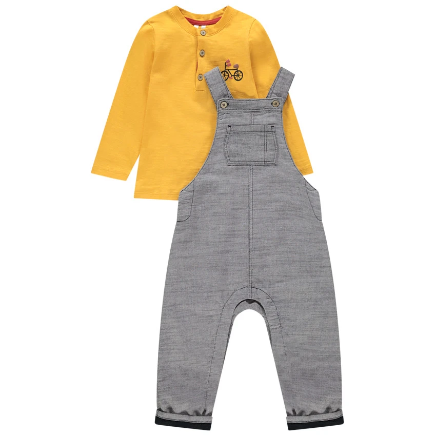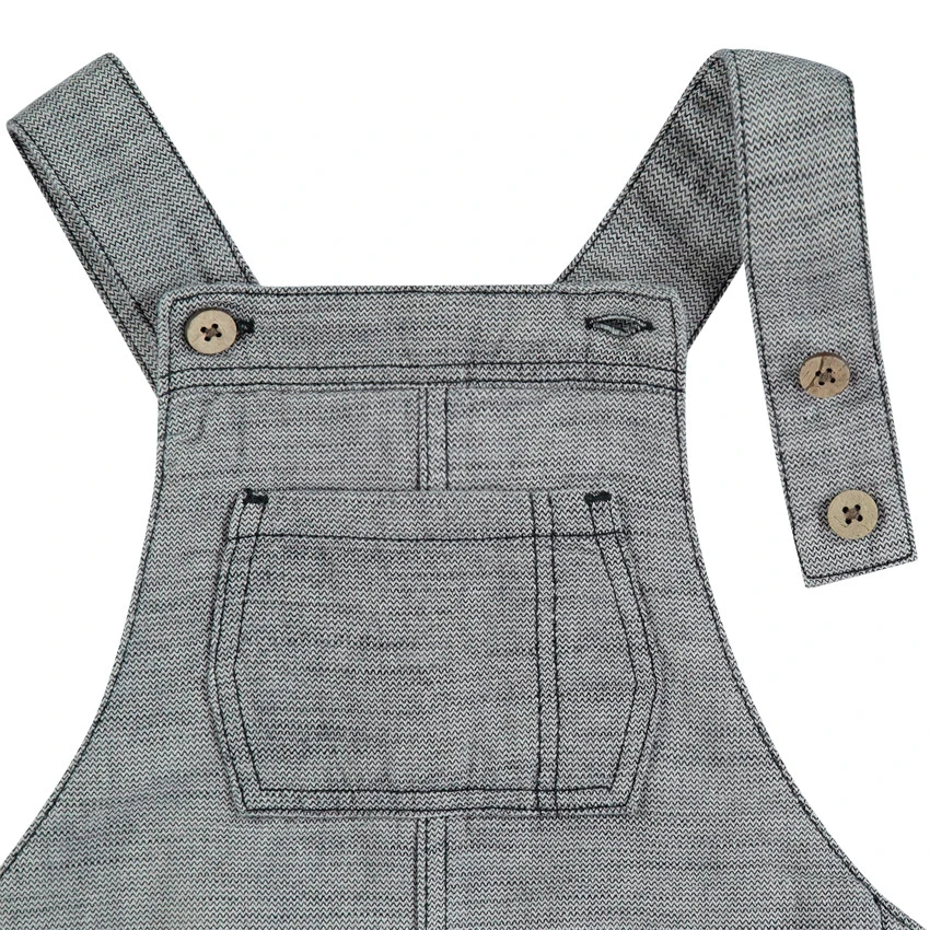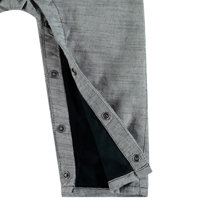 Salopette longue gris chiné. Bretelles ajustables en hauteur. 1 poche sur la poitrine. Ouvertures sur les côtés. Entrejambe pressionné. Doublure en jersey.