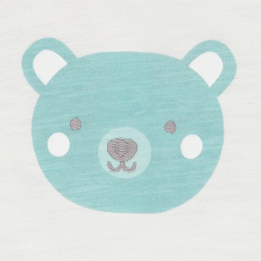 T-shirt manches courtes avec liseré contrasté. Encolure ronde avec inscription et liseré contrasté. Print ours sur le devant. Ouverture pressionnée au dos.