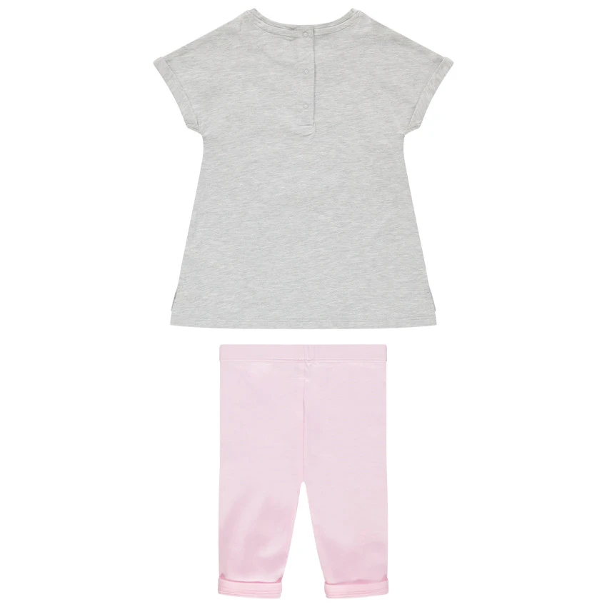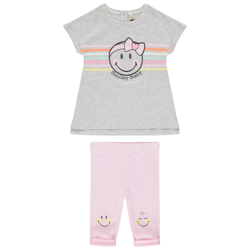 Legging uni en jersey. Taille élastiquée. Smiley Baby printé sur les genoux.