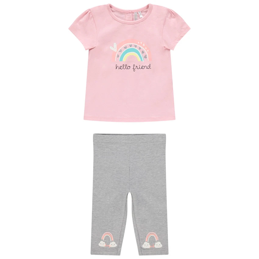 Corsaire en jersey chiné. Taille élastiquée. Arcs-en-ciel printés sur le bas des jambes .