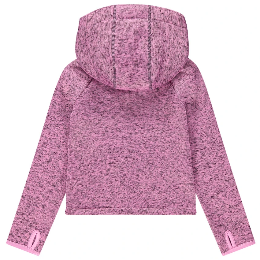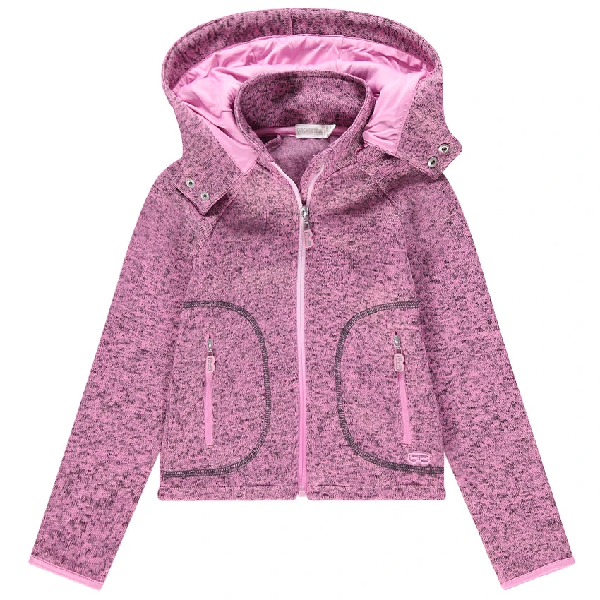 Gilet à capuche en maille chinée. Poches zippées. Ouverture devant zippée. Doublure de la capuche en jersey.