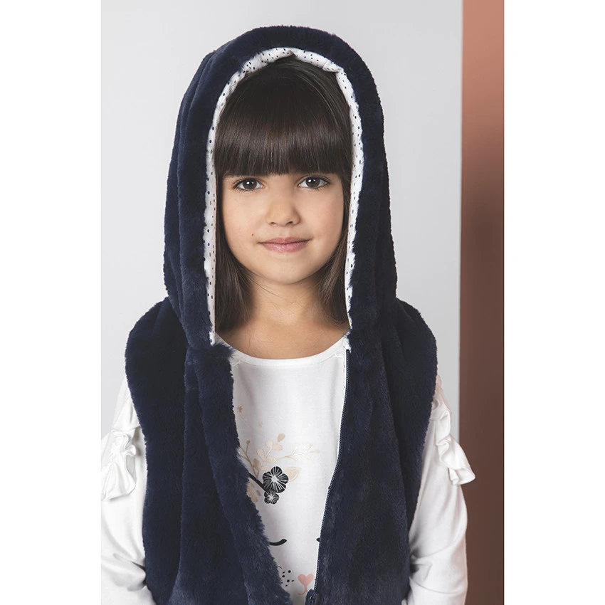 Gilet à capuche en sherpa pour fille. Doublure en jersey à pois pour plus de confort. Ouverture zippée sur le devant pour l’enfiler facilement.