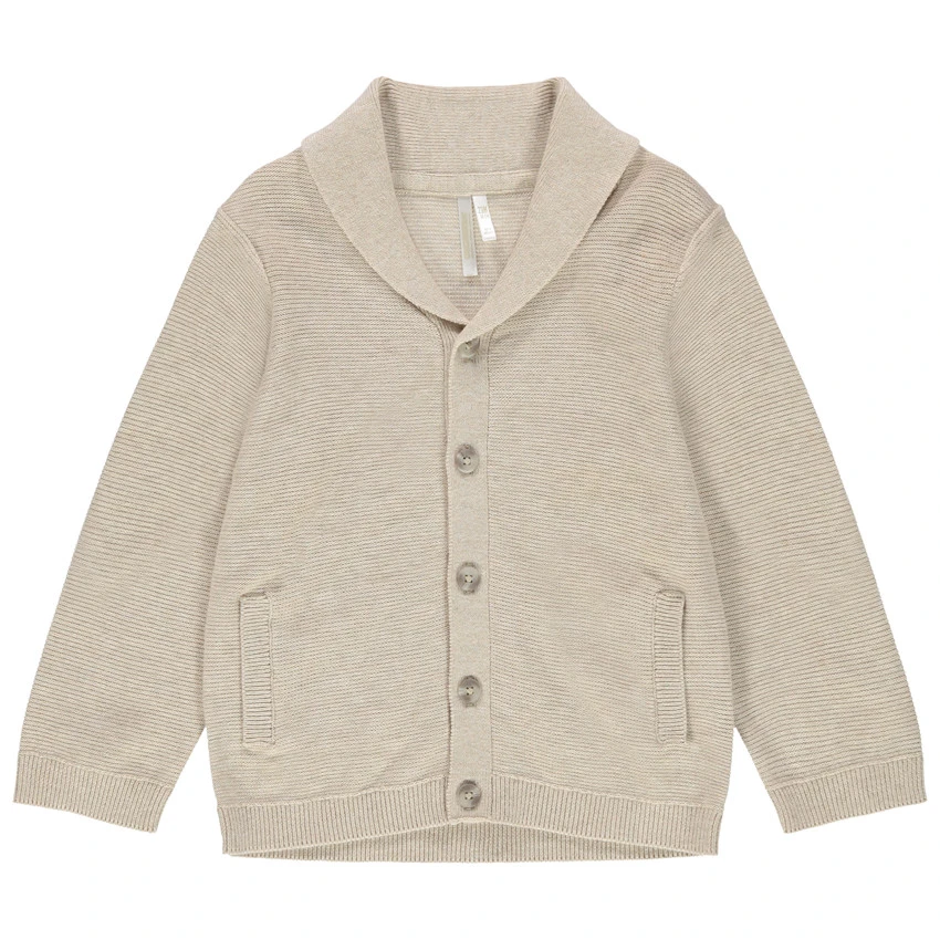 Gilet en maille. Col châle. Ouverture boutonnée devant. 2 poches passepoilées. Poignets et base en bord-côte.