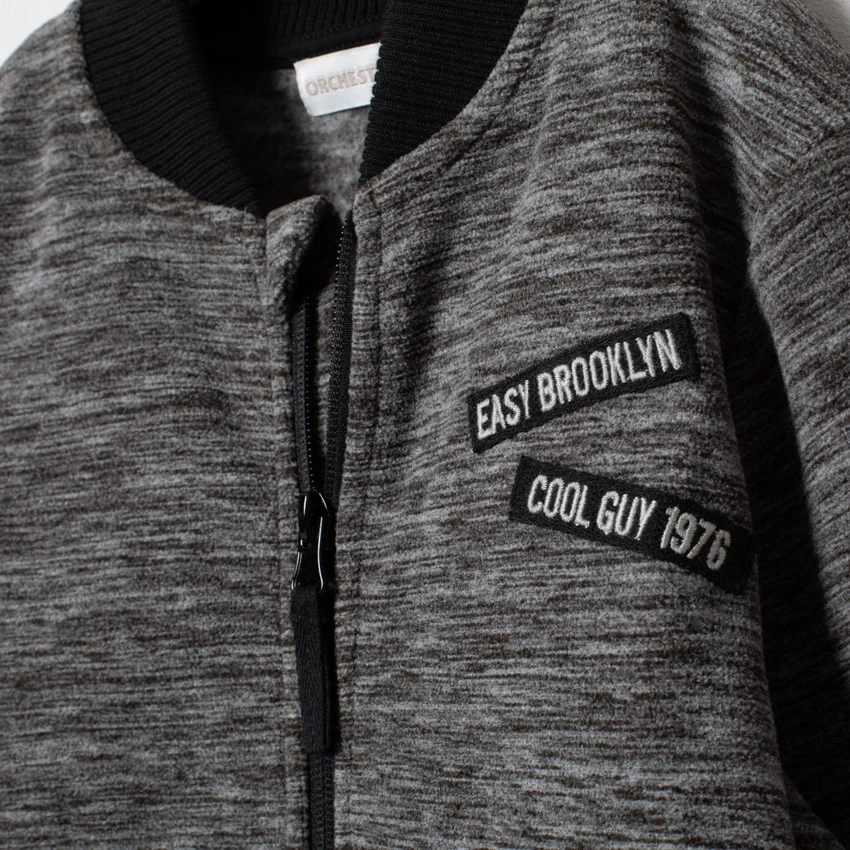 Gilet en polaire. Col teddy en bord-côte. Ouverture zippée devant. Inscriptions patchées sur la poitrine. 2 poches kangourou devant. Poignets et base en bord-côte. Message printé au dos.