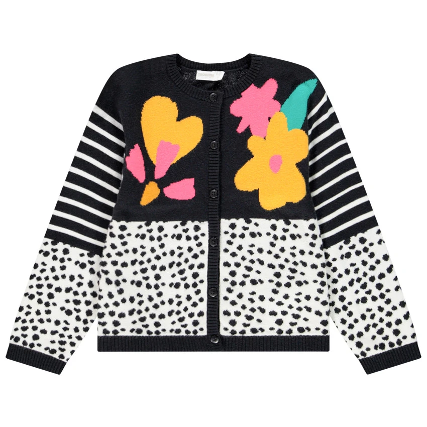 Gilet en tricot à motifs en jacquard. Col rond en maille extensible. Ouverture boutonnée devant. Poignets et base en maille extensible.