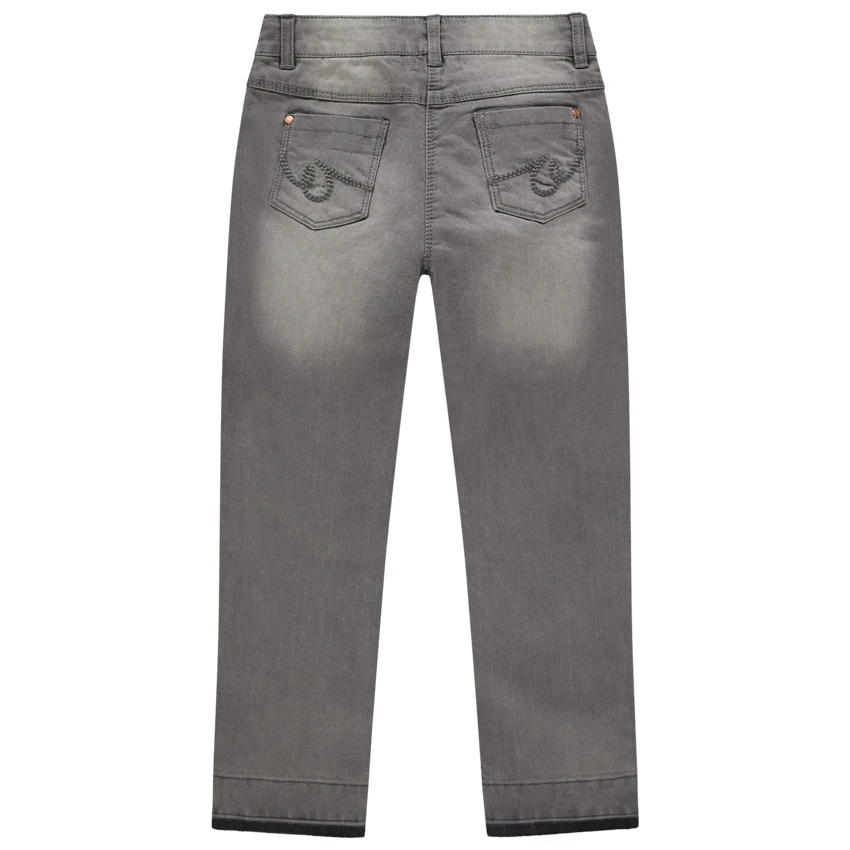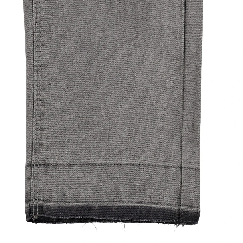 Jean effet used et crinkle. Taille ajustable de l’intérieur par élastique et boutons. 2 poches cavalières et 1 poche ticket. 2 poches plaquées au dos. Effet ourlet décousu.