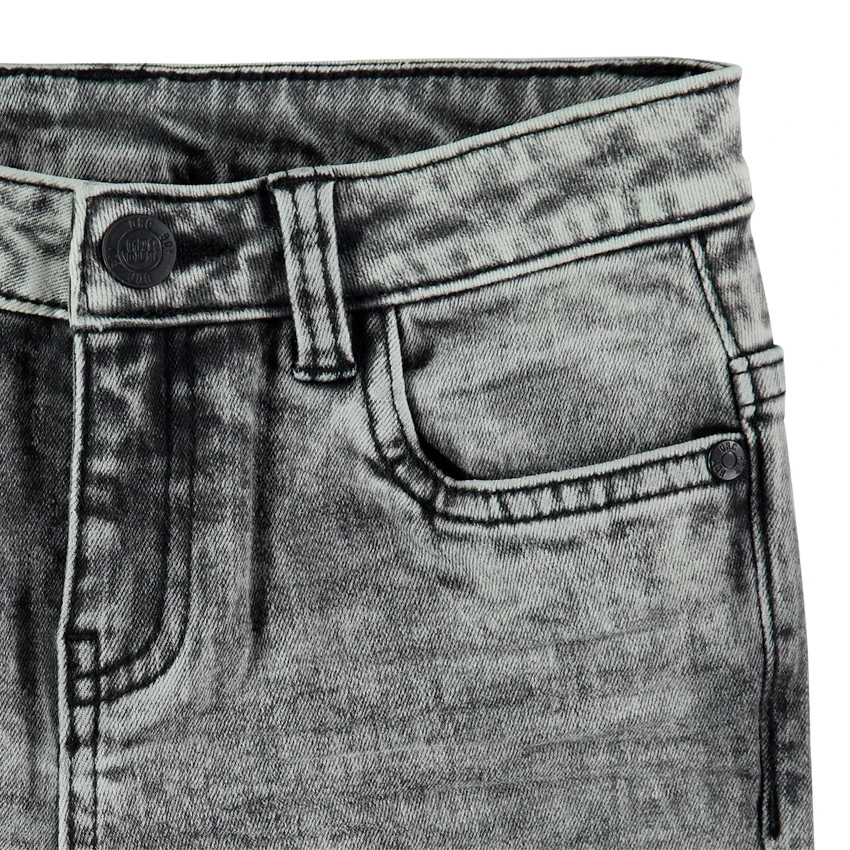 Jean effet used et crinkle. Coupe Skinny. Taille ajustable de l’intĂ©rieur par Ă©lastique et boutons. Ceinture Ă passants avec bouton et braguette zippĂ©e. 2 poches cavaliĂšres. 1 poche ticket. 2 poches plaquĂ©es au dos.Â