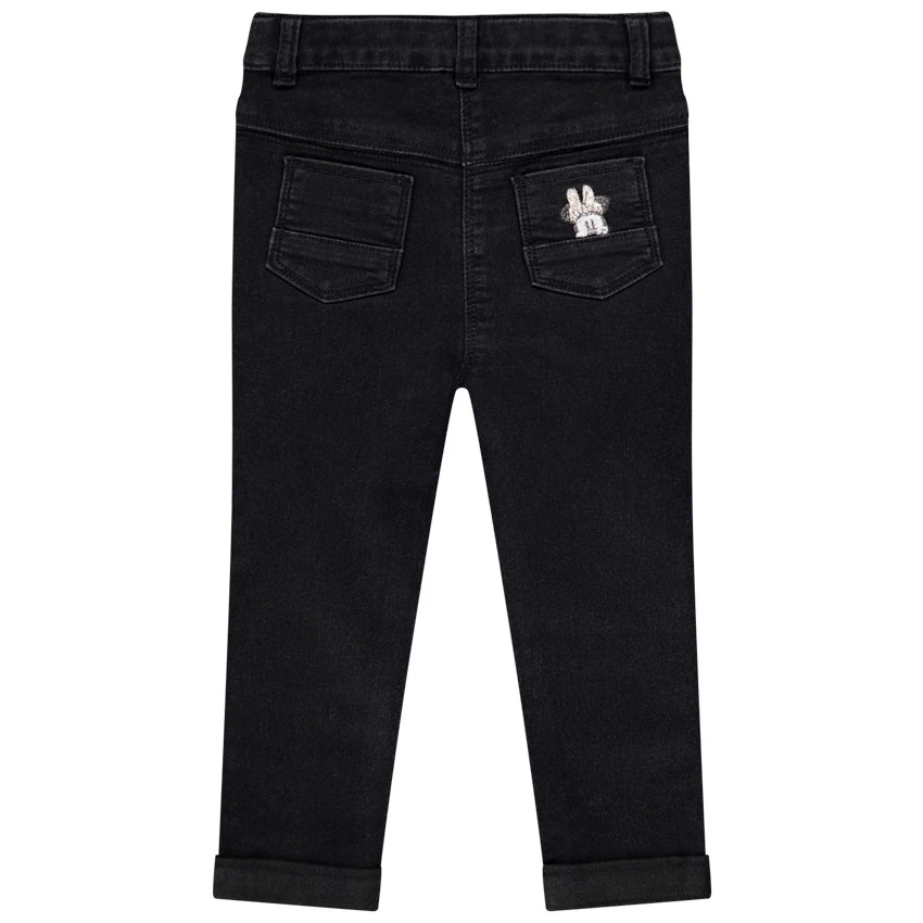 Jean pour bébé fille. Taille à passants ajustable de l’intérieur pour l’adapter au mieux à la morphologie de l’enfant. Inscription brodée et badge Minnie en sequins. Inscription sur le bas de la jambe. 2 poches plaquées au dos avec Minnie brodée.