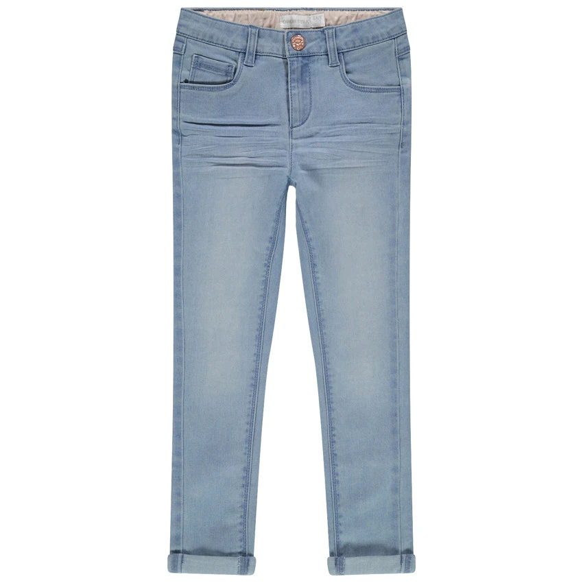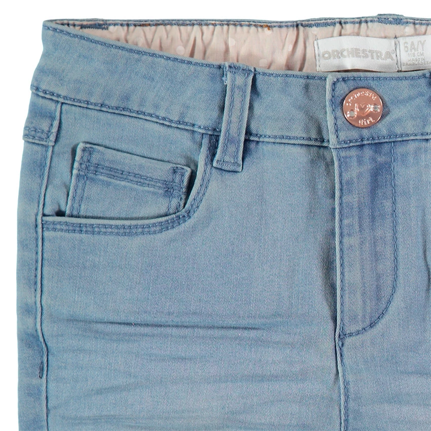 Jean skinny effet délavé. Taille ajustable de l’intérieur par élastique et boutons pour l’adapter au mieux à la morphologie de l’enfant. Passants ceinture à l’extérieur. Ouverture zippée et boutonnée à l’avant. Bouton gravé. Deux poches cavalières et une poche ticket sur le devant. Effet crinkle en haut des cuisses. Deux poches plaquées à l’arrière. Revers fixes.