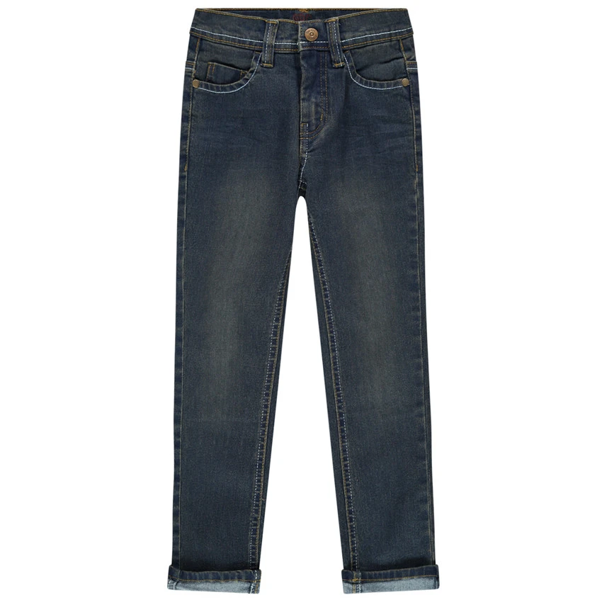 Jean effet délavé coupe slim. Taille ajustable de l’intérieur par élastique et boutons pour l’adapter au mieux à la morphologie. Ceinture à passants avec bouton et braguette zippée. 2 poches cavalières et 1 poche ticket. 2 poches plaquées au dos. Surpiqûres contrastées.