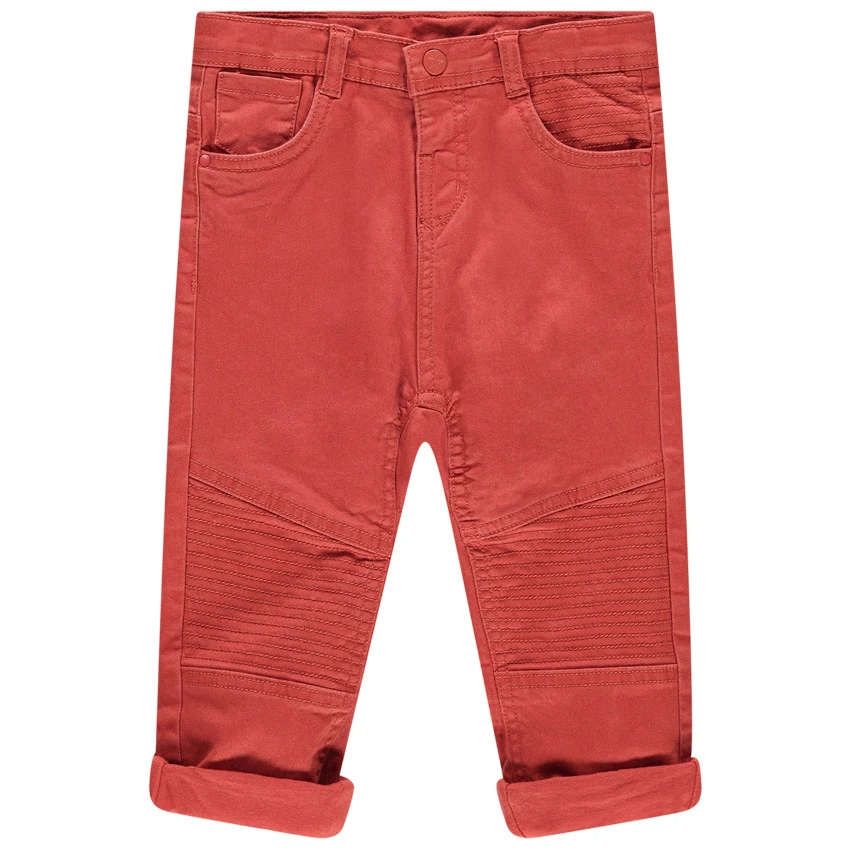 Jean surteint orange. Taille ajustable de l’intérieur par élastique et boutons. Ceinture à passants avec bouton et braguette zippée. 2 poches cavalières et 1 poche ticket. Jeux de découpes et de supiqûres. 2 poches plaquées au dos.