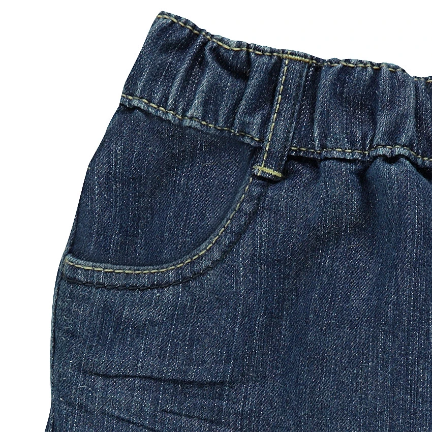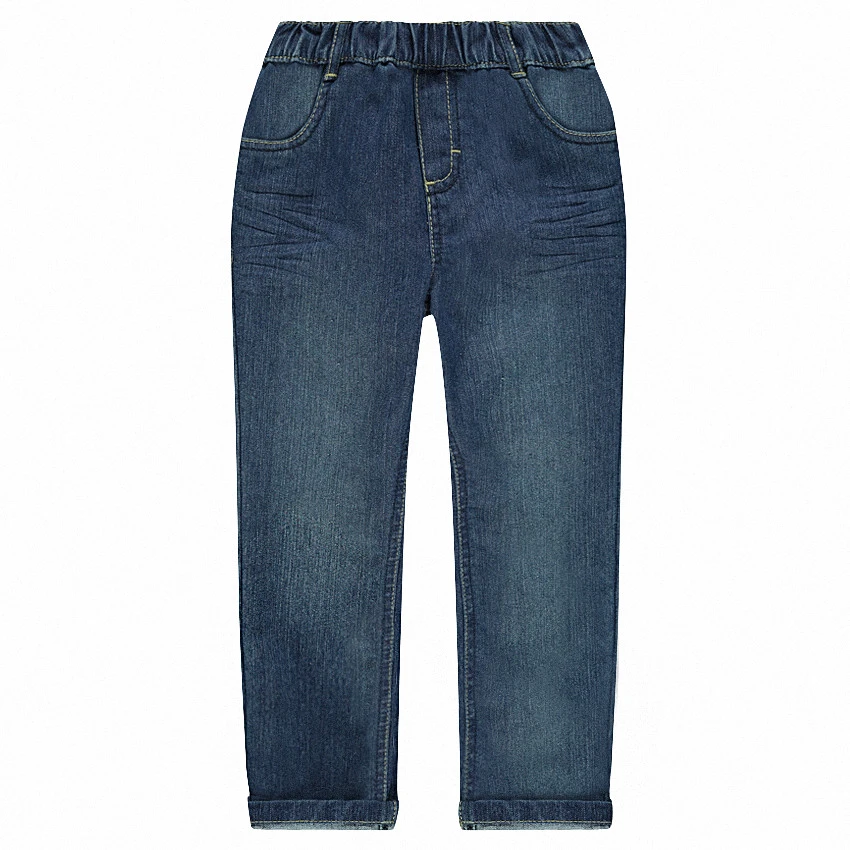 Jean bleu pour enfant garçon. Taille élastiquée pour plus de confort. Effet délavé et froissé sur les jambes. Coupe droite. Passants cousus. 2 poches cavalières devant. Découpe braguette. 1 poche plaquée au dos. Surpiqûres contrastées.