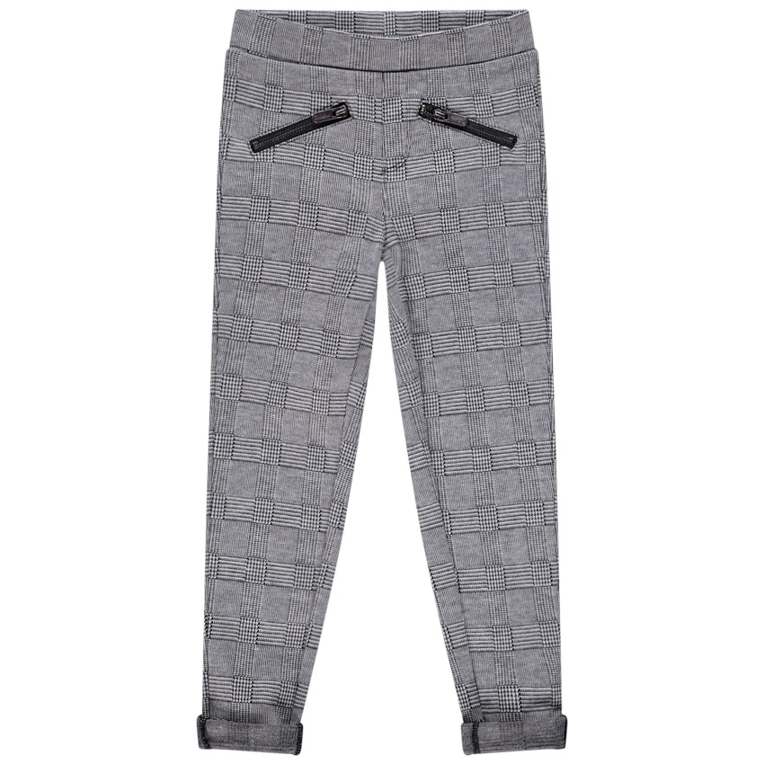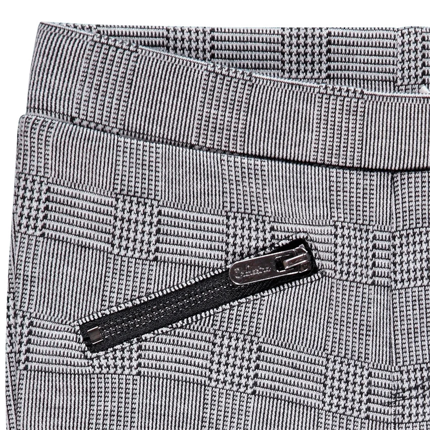 Jegging à carreaux Prince de Galles pour fille. Taille élastiquée pour un grand confort. 2 zips fantaisie sur le devant.