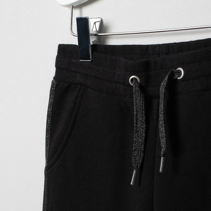 Pantalon de jogging en molleton. Taille élastiquée à cordons de serrage. 2 poches cavalières devant. Bandes brillantes sur les côtés. Chevilles en bord-côte.