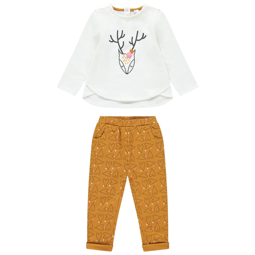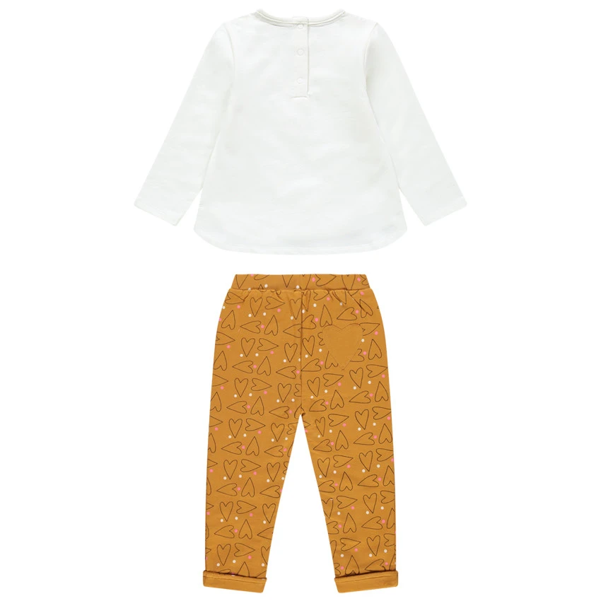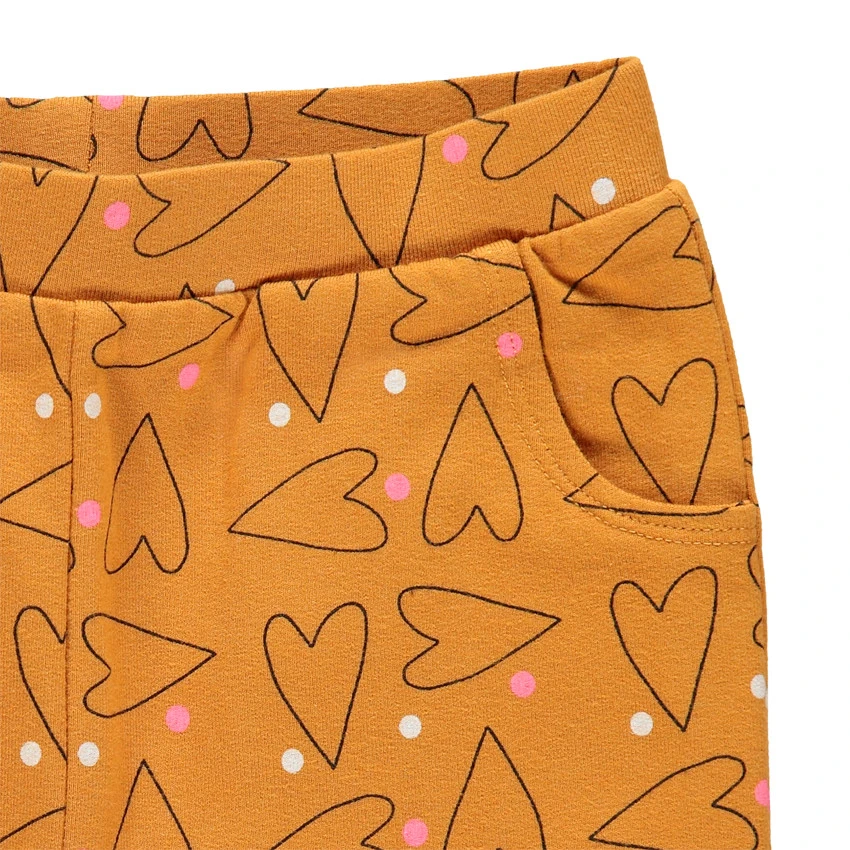 Pantalon en molleton imprimé coeurs all-over. Taille élastiquée. Revers fixes sur le bas.