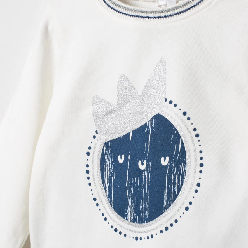 Haut de jogging en molleton. Encolure ronde en bord-côte. Lune printée sur le devant.