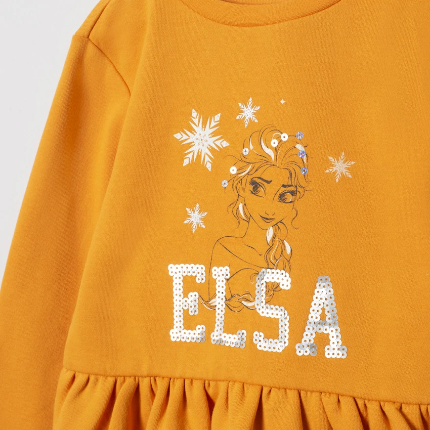 Sweat en molleton. Encolure ronde. Print Elsa Reine des neiges avec sequins. Bas du sweat volanté. Poignets en bord-côte.