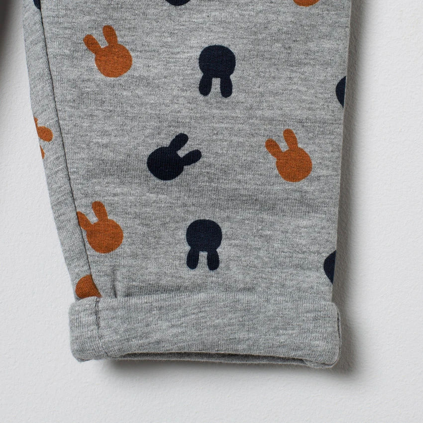 Pantalon doublé jersey imprimé lapins all-over. Taille élastiquée. Revers fixes.
