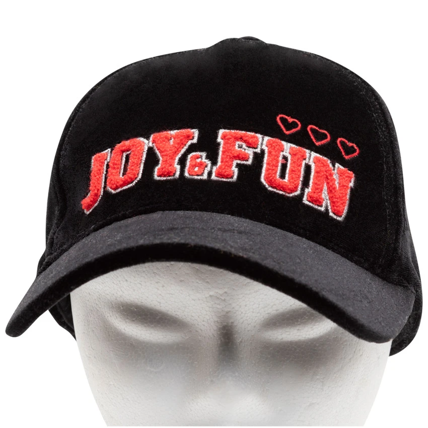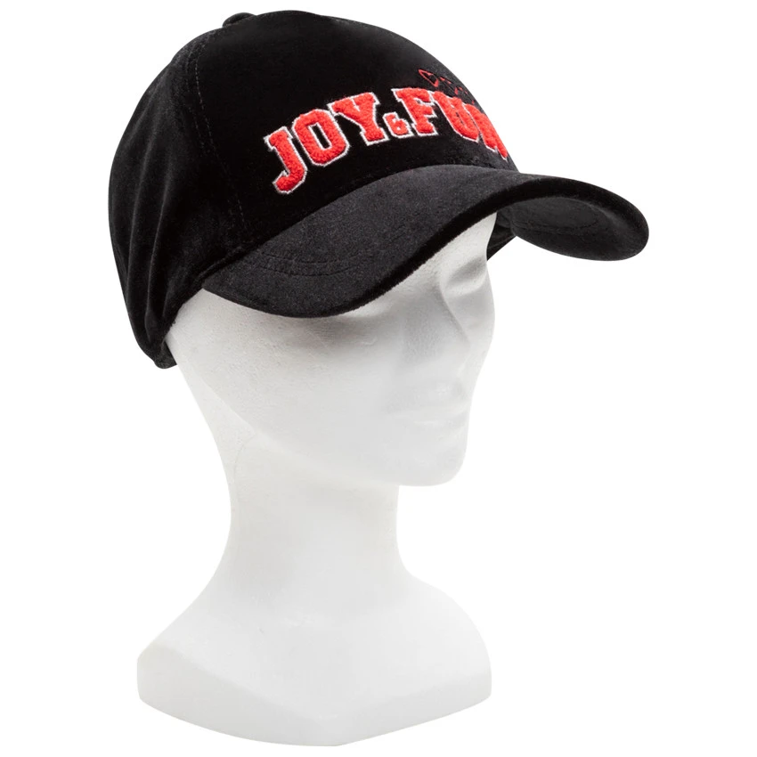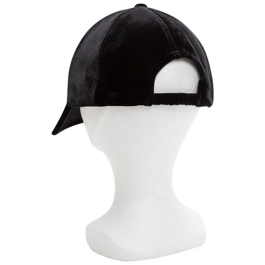 Casquette en velours. Inscription en relief devant. Ouverture au dos avec laniĂšre Ă©lastiquĂ©e.Â
