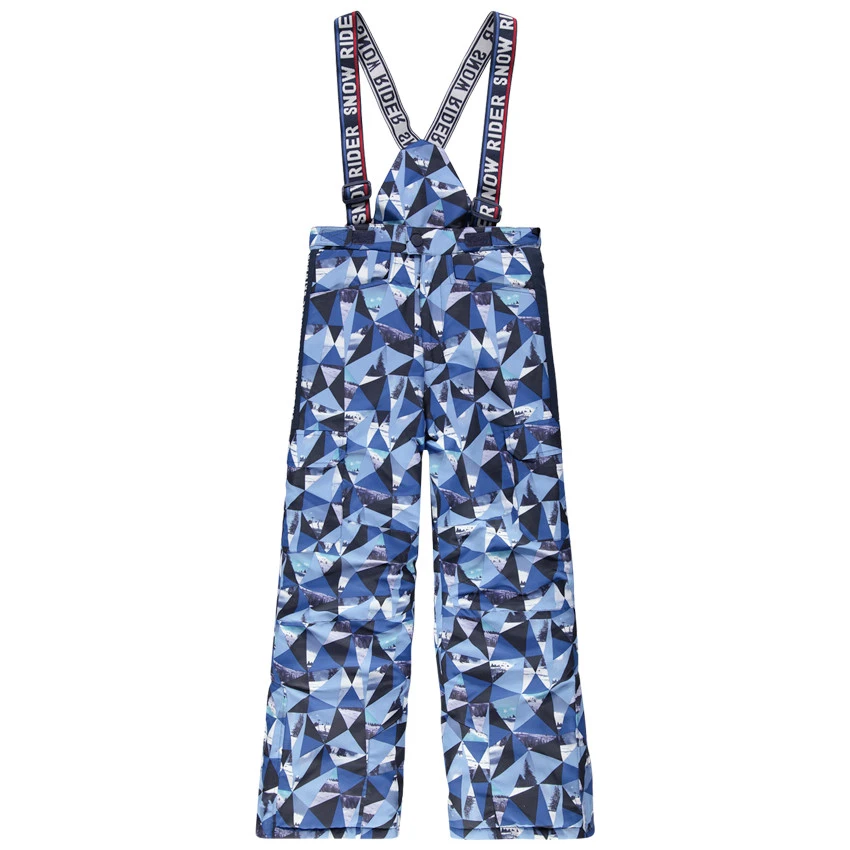 Pantalon de ski imprimé graphique all-over. Imperméable. Bretelles amovibles et ajustables. 2 poches cavalières devant. Ouvertures zippées sur le bas du pantalon avec soufflet pare-neige pressionné pour une isolation parfaite. 2 poches à rabat au dos.