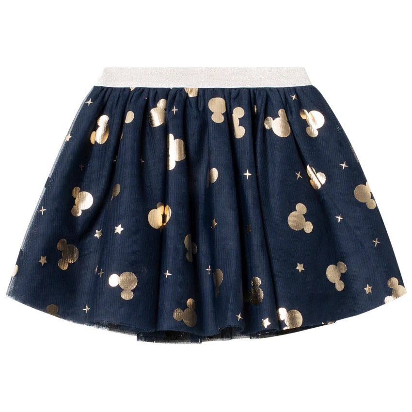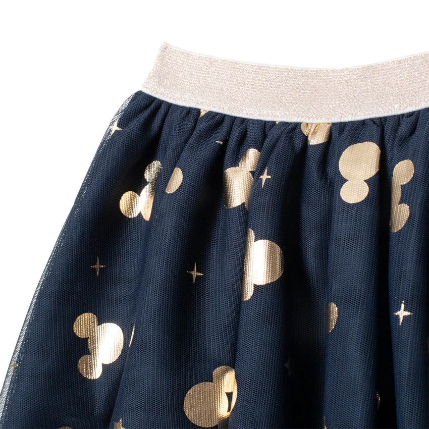 Jupe en tulle. Taille élastiquée brillante. Sertis Mickey dorés all-over. Doublure intégrée.