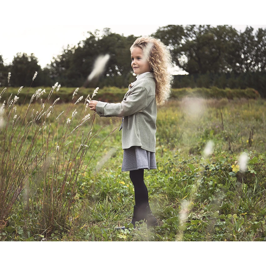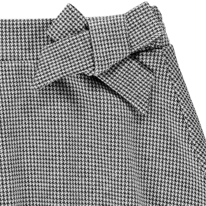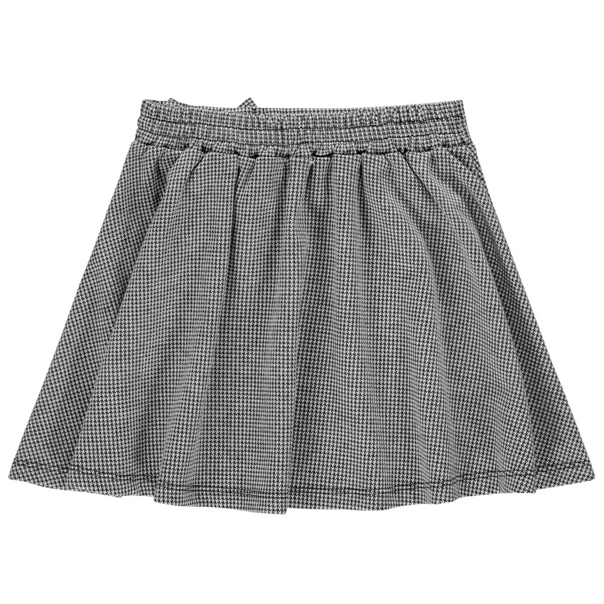 Jupe courte pour fille. Pied de poule all-over. Taille élastiquée pour plus de confort avec noeud fantaisie. Forme patineuse.
